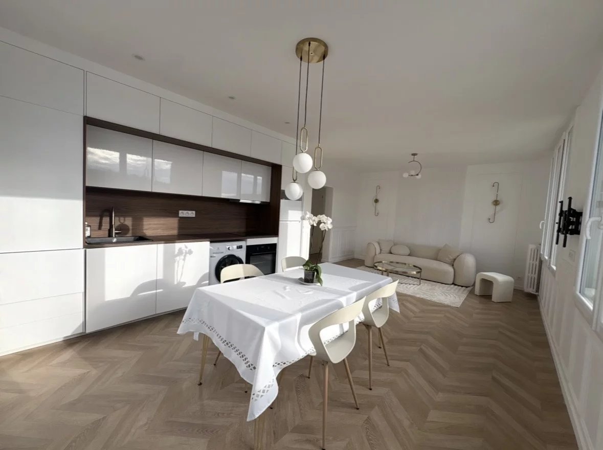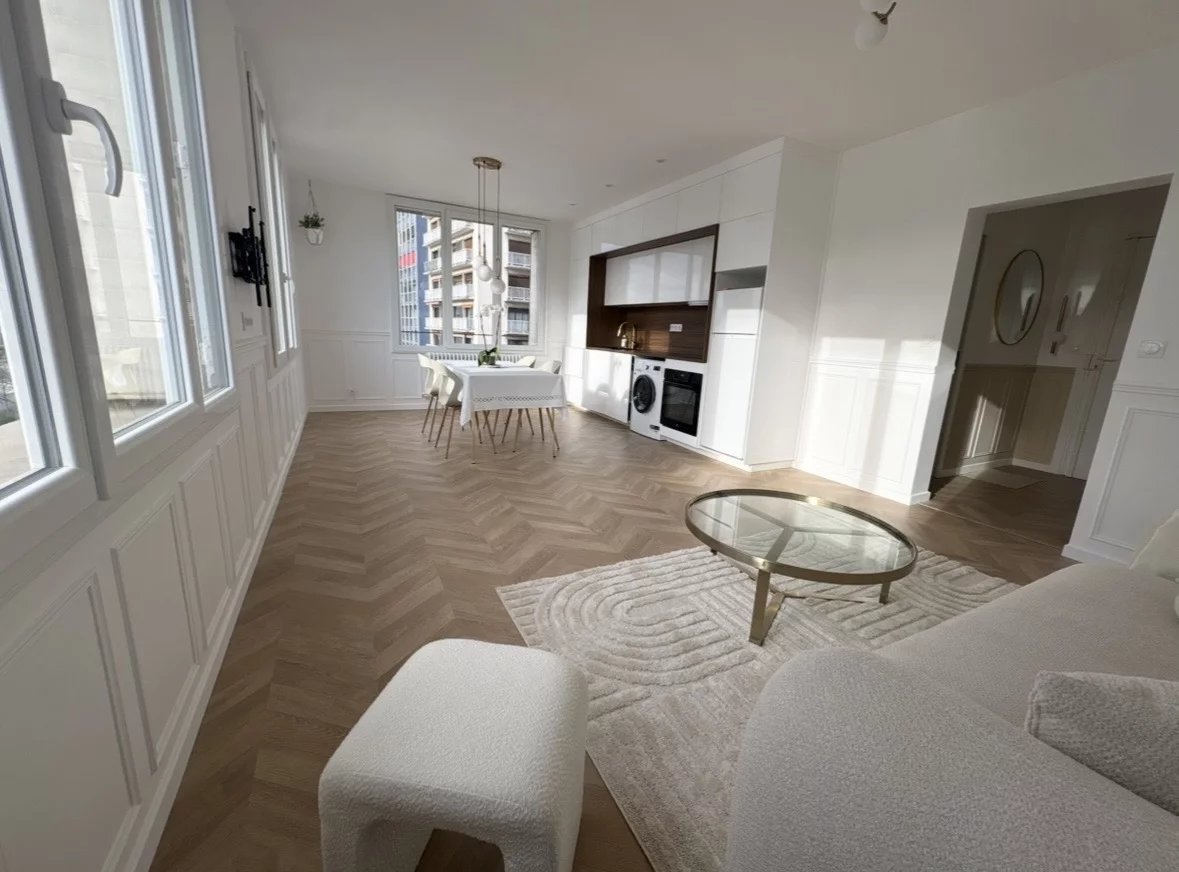 Avenue du Maréchal Juin - Dans une résidence de la fin des années 60 aux parties communes soignées, au 3ème étage avec ascenseur, appartement refait à neuf de 3 pièces meublées, avec une vue entièrement dégagée sur la Seine sans aucun vis-à-vis et inondé de lumière, composé d'une entrée, d'un séjour avec cuisine ouverte équipée et aménagée, de 2 chambres dont une avec un large balcon, d'un dressing, d'une salle de douche et d'un WC séparé. Une cave complète ce bien.